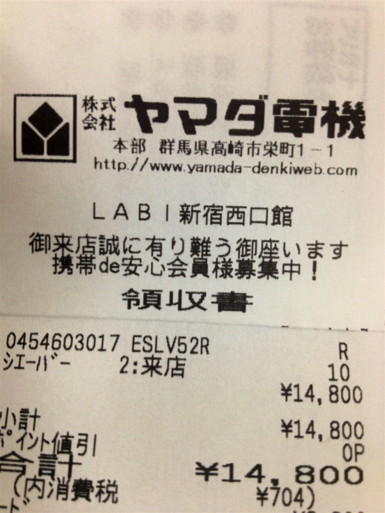 『レシート』パナソニック ラムダッシュ ES-LV52 ハニカミオウジさんのクチコミ掲示板画像1/1