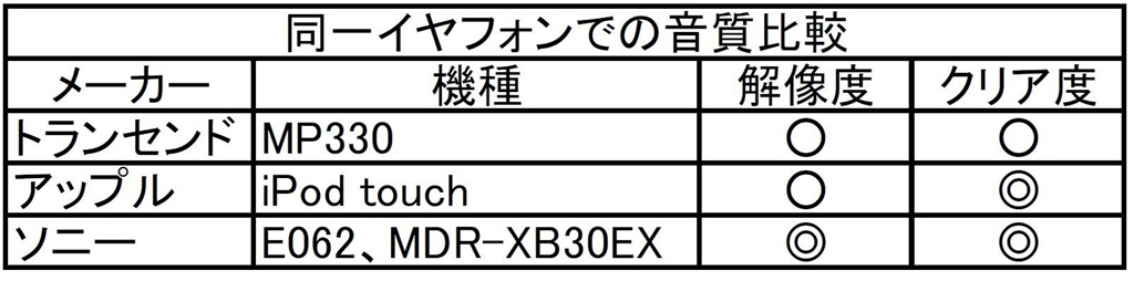 同一イヤフォンでの音質比較
