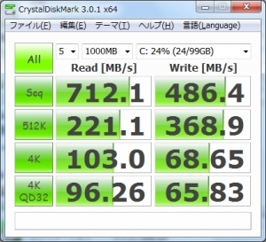 内蔵ディスクをSSDに交換してベンチマークをとりました。