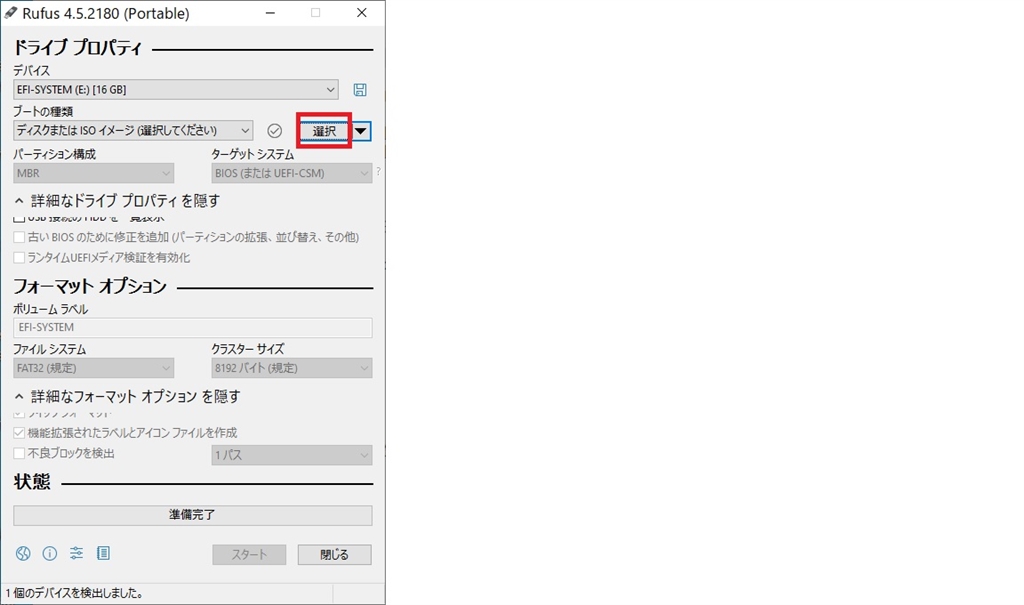 選択して開く