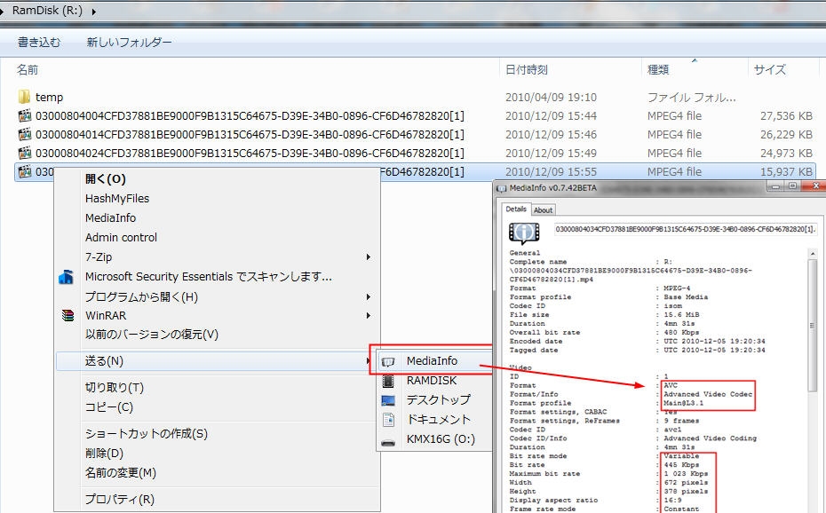 Mediainfoで動画のフォーマットを確認