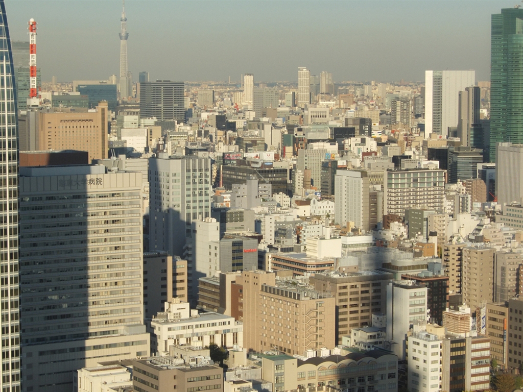 望遠側。コンクリートジャングルに映る東京タワーの影