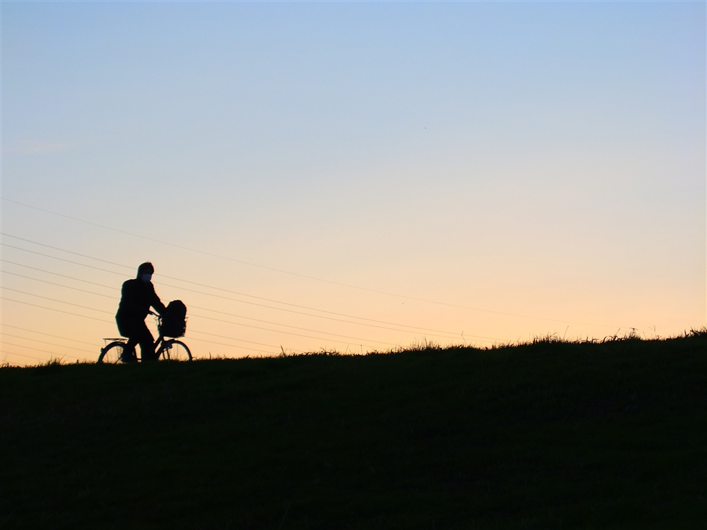 朝焼けに浮かぶ自転車少年