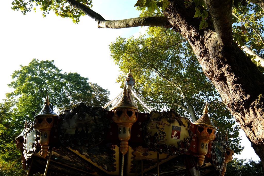 宿泊地近くのモンソー公園の木洩れ日とメリーゴーランド