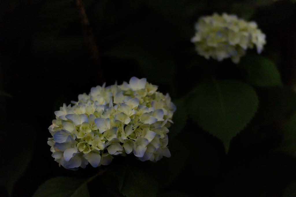 色が戻って来ただけで満足な夜中のアジサイ −4