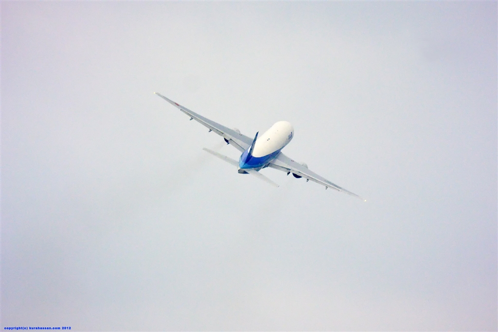 このヒコーキ、約3km先の離陸直後です。