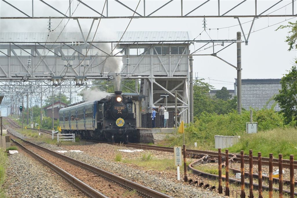 陽炎の影響で線路や電柱が揺らいでいます。