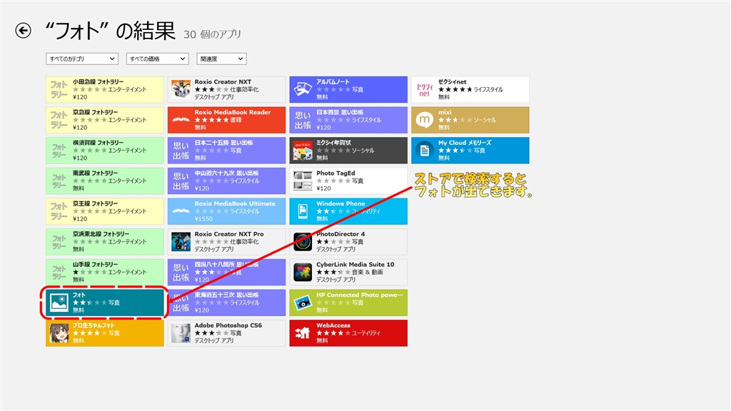 ストア内フォト検索結果画面