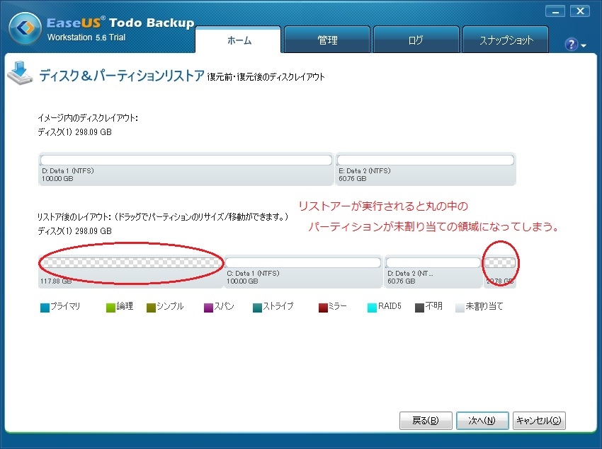 3.リストアーのメニュー画面