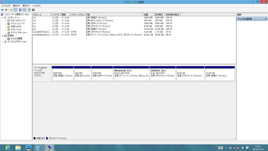 『パーティションがいっぱい』Lenovo IdeaPad Yoga 13 Core i7搭載モデル 旅行に行きたいなさんのクチコミ掲示板画像1/1