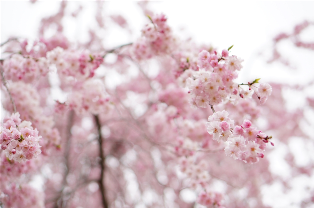 満開の八重紅枝垂 (新宿御苑レストハウス横)