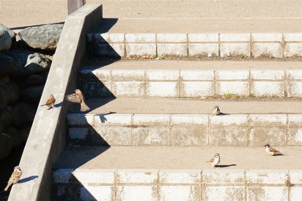 日向ぼっこするスズメさん達