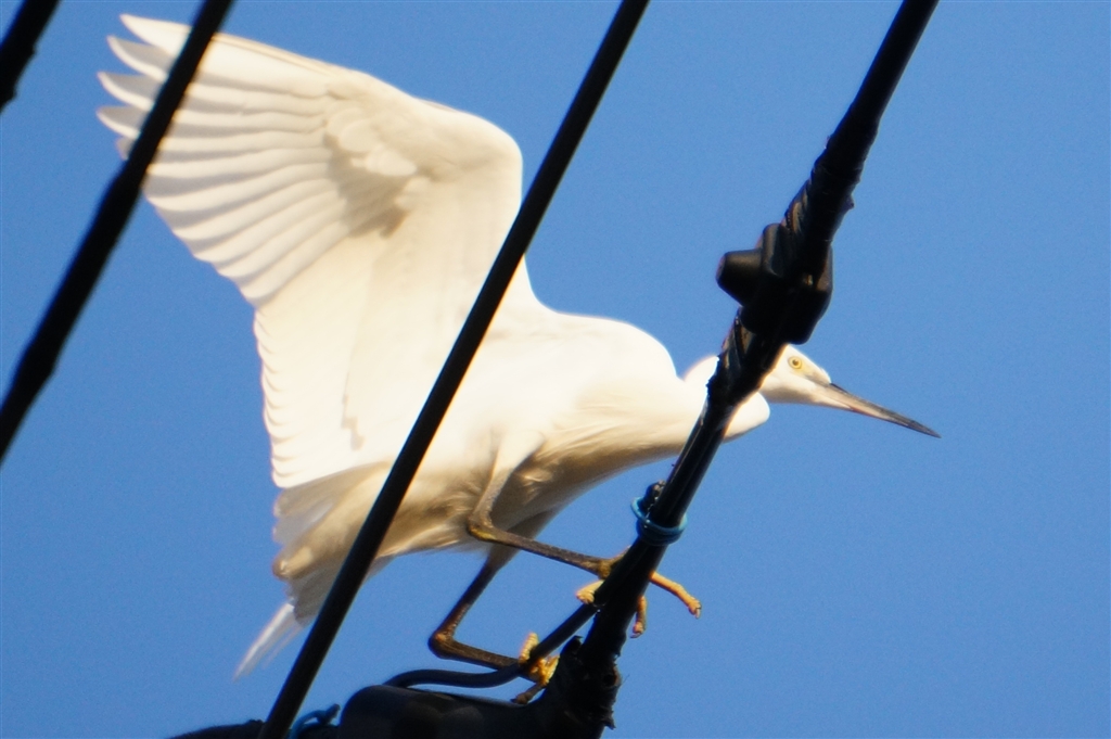 電線に止まるサギ