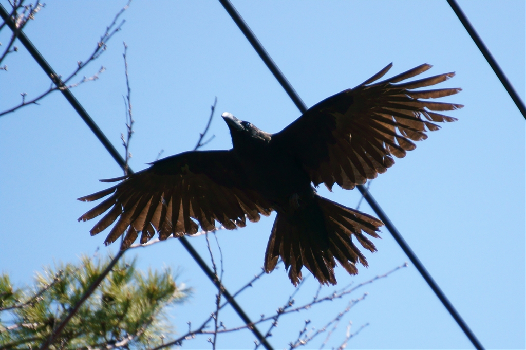 カラス飛翔(SS優先、AF、トリミングあり)