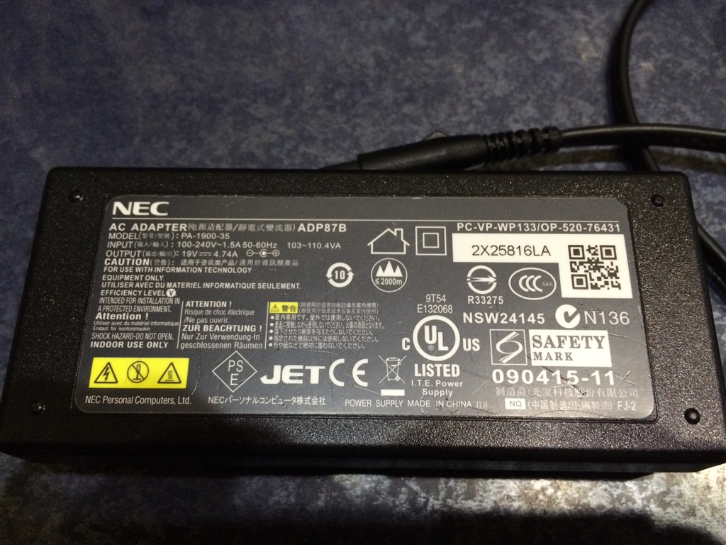 こちらは不良ACアダプター。