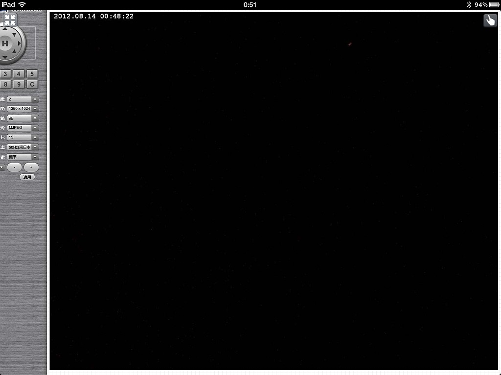 ネットワークカメラ映像のiPad画面をScreenShotしました。