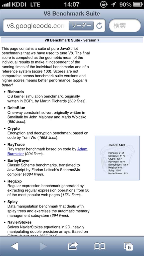 iPhone 5 V8 Benchmark Suite 7