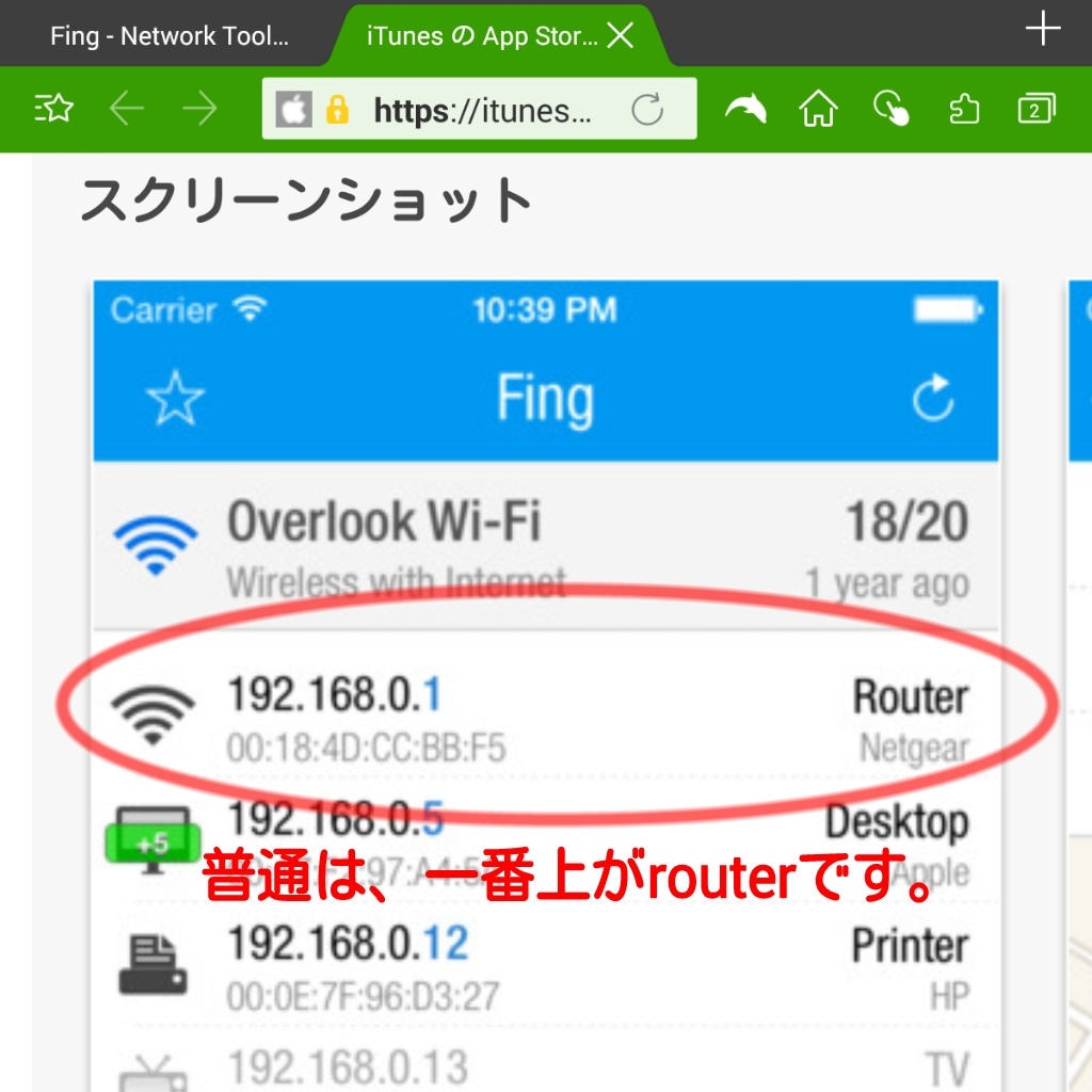 『Fing、一覧にrouterがありますか?』Apple iPad 第3世代 Wi-Fiモデル 64GB HARE58さんのクチコミ掲示板画像2/2