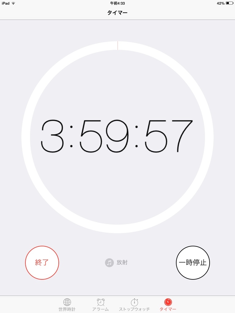 『iOS 7 タイマー画面』Apple iPad mini Wi-Fiモデル 16GB MD528J/A ネクサス12345さんのクチコミ掲示板画像1/2