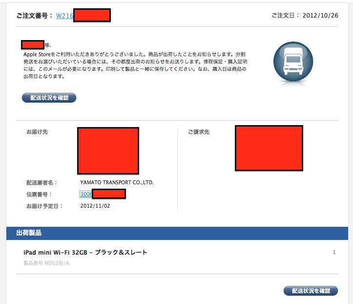 『商品出荷のお知らせメール』Apple iPad mini Wi-Fiモデル 32GB MD529J/A canna7さんのクチコミ掲示板画像1/2