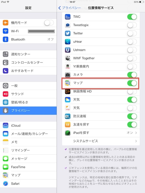位置情報サービス>マップ