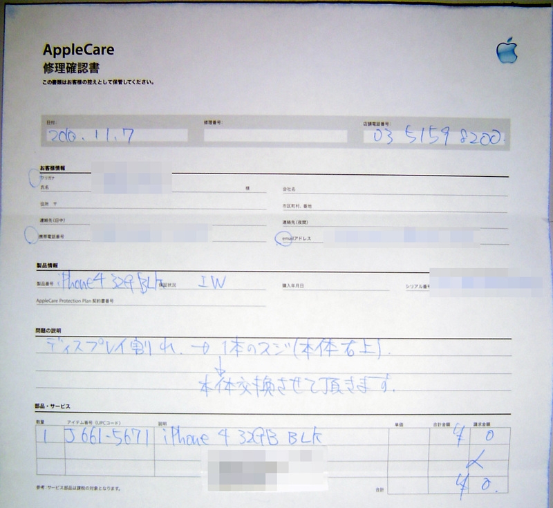 『修理確認書』Apple iPhone 4 16GB SoftBank Nisizakaさんのクチコミ掲示板画像2/2