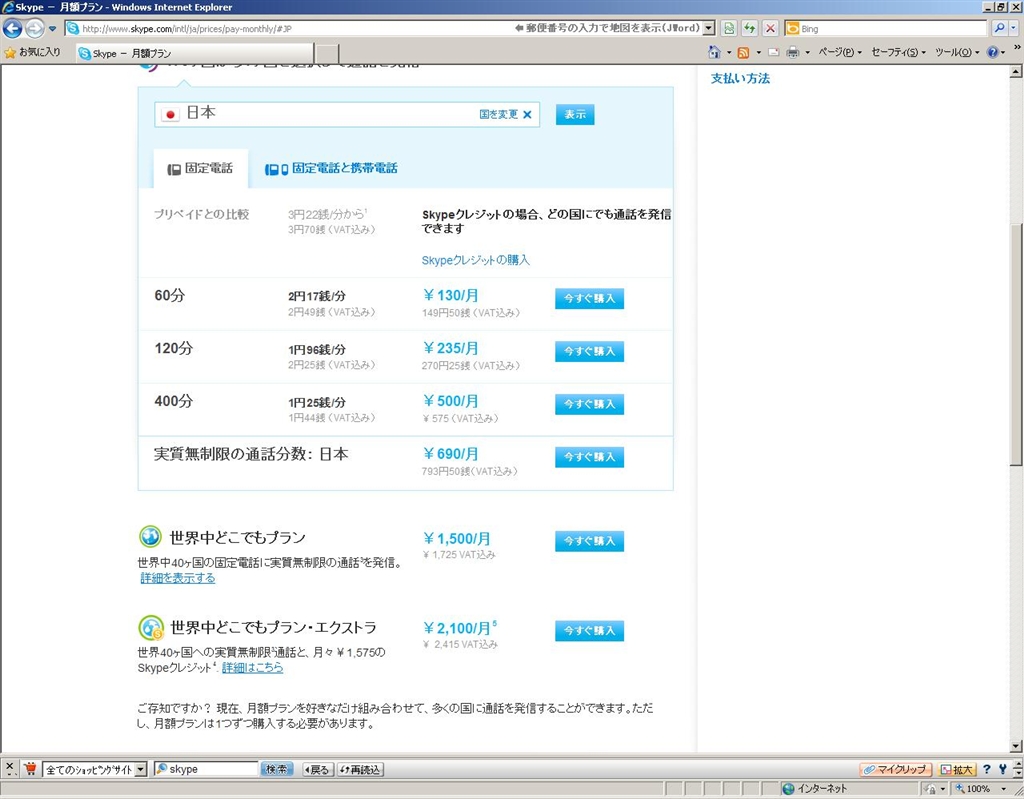月額プラン(固定電話と携帯電話)