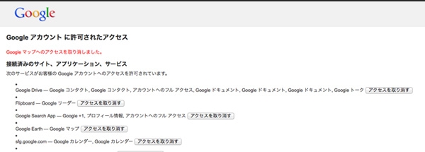 Googleアカウントに許可されたアクセス