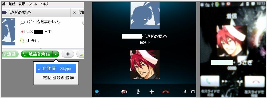 『左から順に通話開始、呼び出し中、携帯側の受信画面です。』シャープ IS03 au 夜うさぎさんのクチコミ掲示板画像1/1