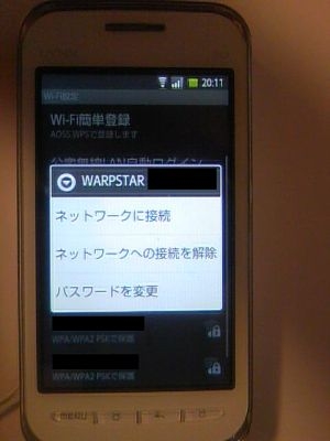 ネットワークを長押し接続を解除画面