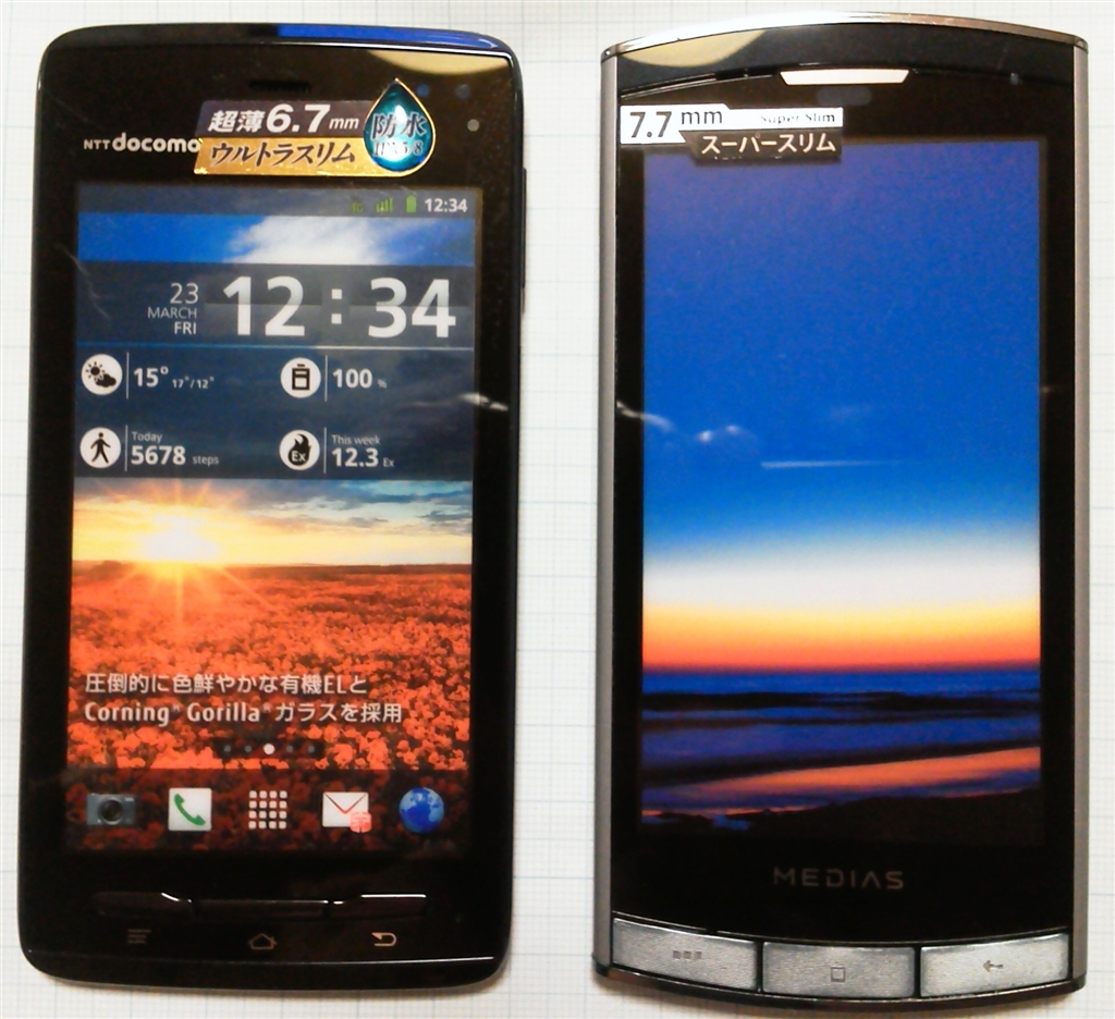 側面上部 左:F-07D 右:N-04C
