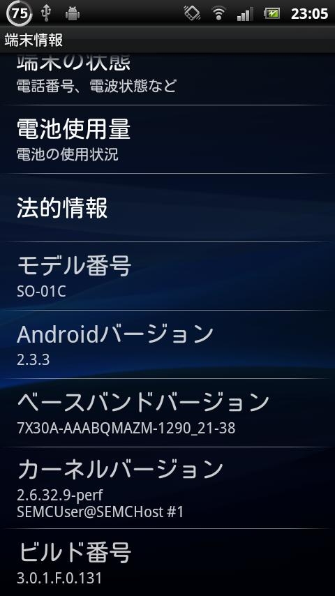 『xperia arc 2.3.3のバージョン表記』SONY Xperia arc SO-01C docomo kakaku.com.jpさんのクチコミ掲示板画像1/2