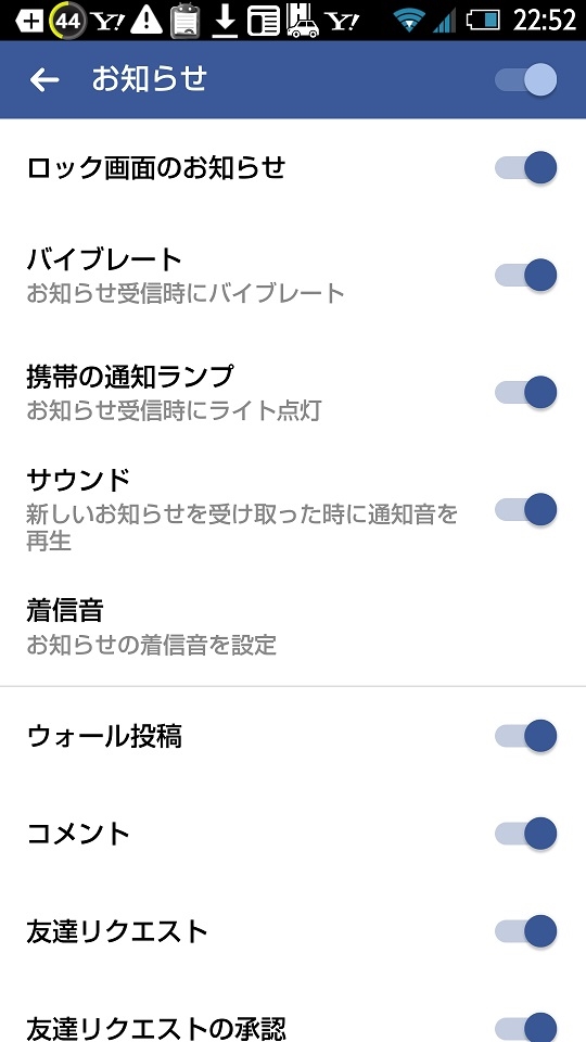 Facebookアプリのお知らせ設定