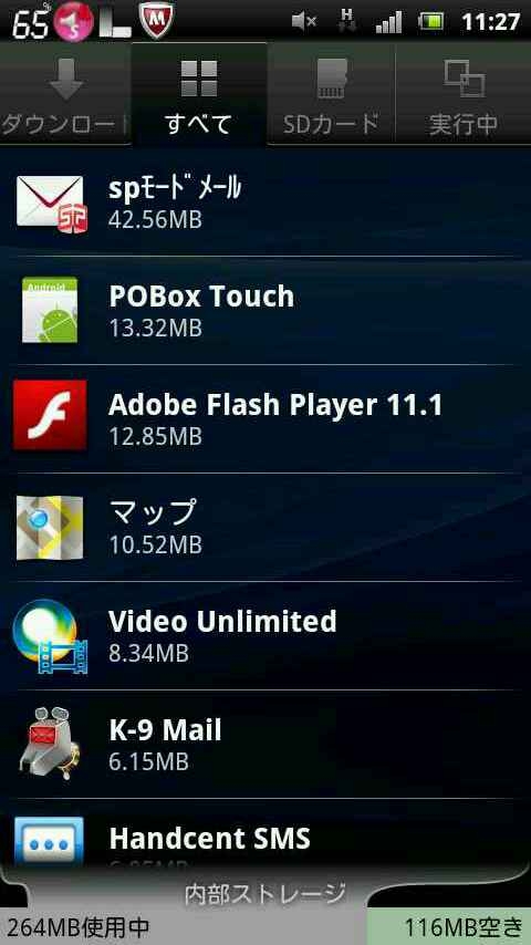 『ストレージ使用状況』SONY Xperia acro SO-02C docomo ついんたさんのクチコミ掲示板画像1/1