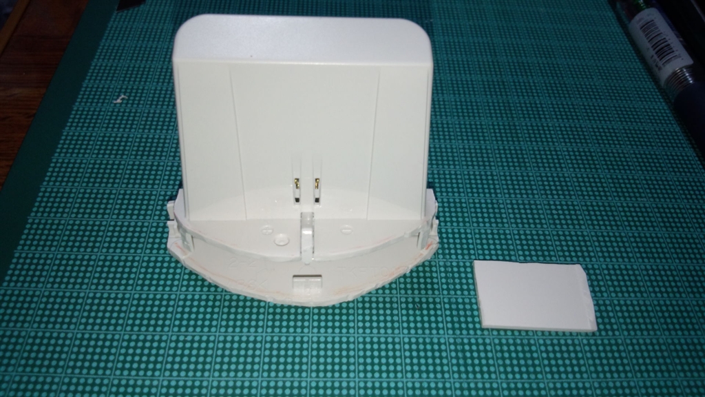 下側部品の中ほどにあるT字の出っ張りは、本体押さえを固定するのに使用します。