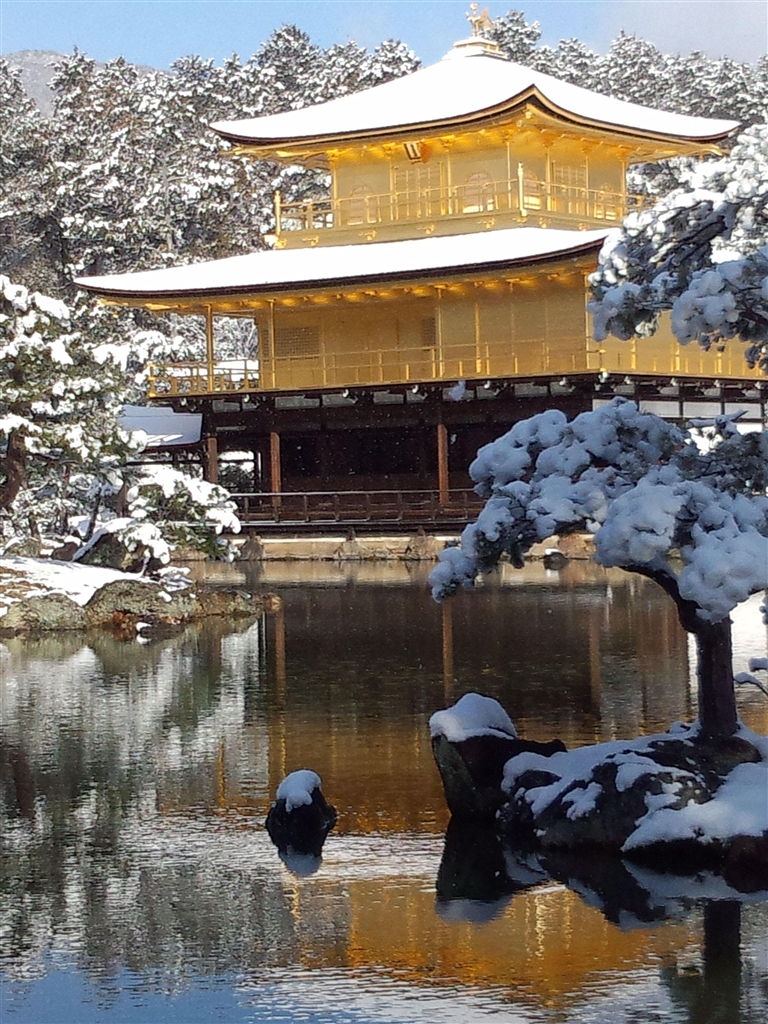 金閣寺の屋根の雪は、晴れてくるとすぐ溶けるので、今日は恵まれていました。