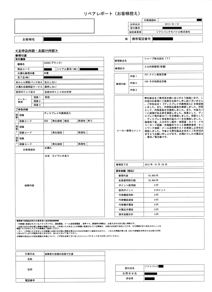 『リペアレポート』シャープ AQUOS PHONE 102SH SoftBank kanahironさんのクチコミ掲示板画像2/4