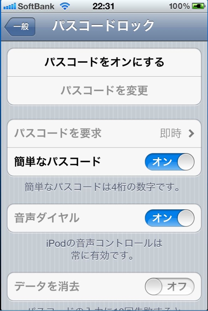 設定→一般→パスコードロック あれれオフになってるけど?