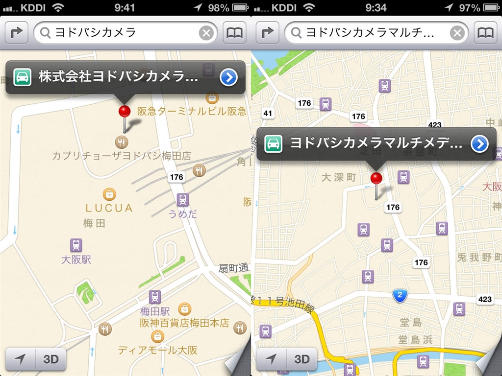 『梅田付近で検索、または、「ヨドバシカメラマルチメディア梅田」で検索ならヒット。』Apple iPhone 4S 16GB au 筆タク丸さんのクチコミ掲示板画像2/2