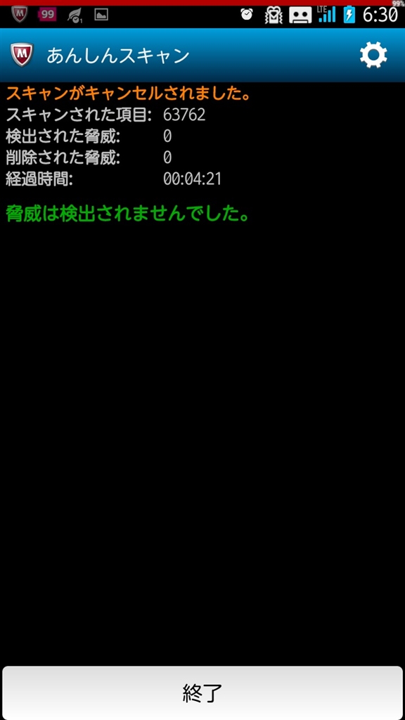 スケジュールスキャン 63762まで 6時間25分でキャンセル