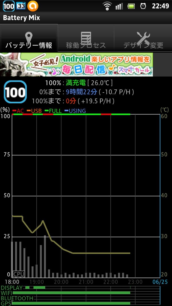 クレードルに刺して放置した状態(BatteryMix)