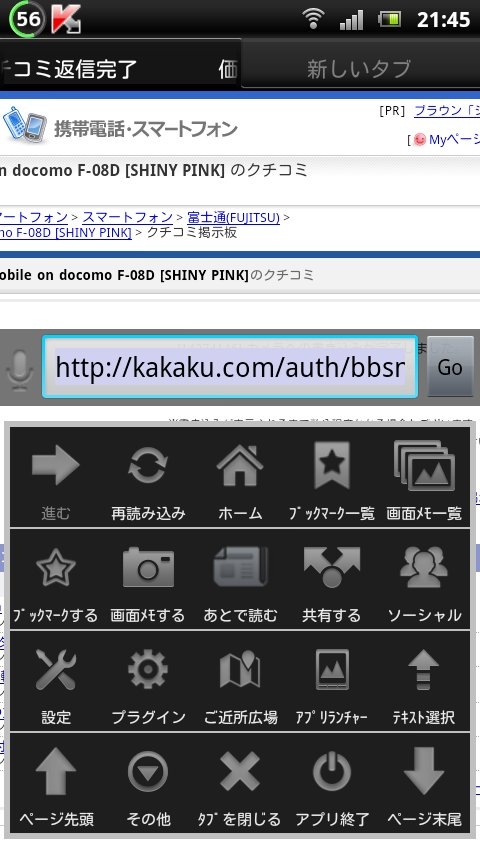 『メニューキー押すと』FCNT Disney Mobile on docomo F-08D 望見者さんのクチコミ掲示板画像1/3