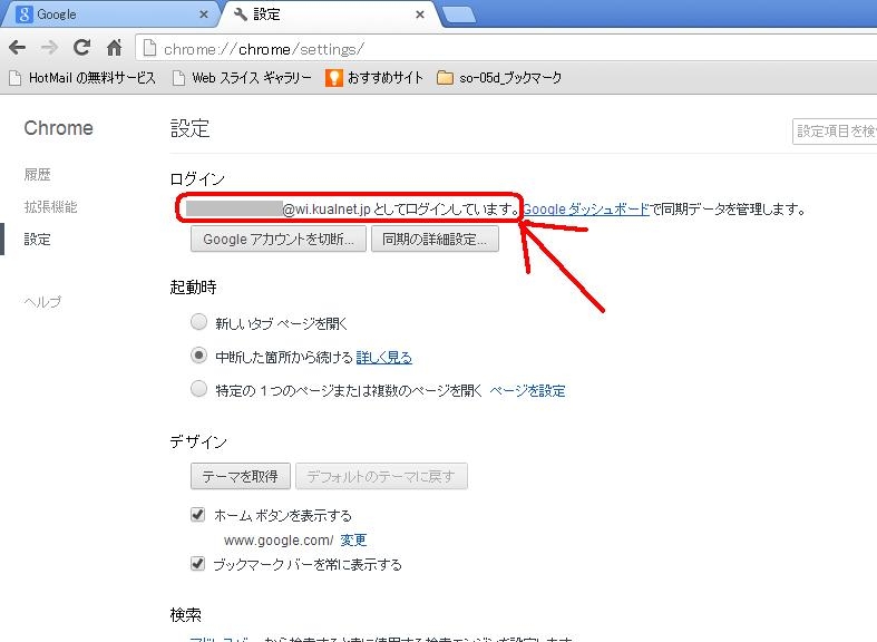 写真2. (Chromeの設定画面)