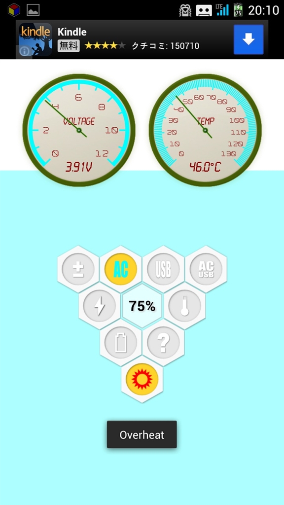『温度計アイコンをタップするとoverheartと表示(笑)』FCNT ARROWS X F-10D docomo woodbellさんのクチコミ掲示板画像3/3