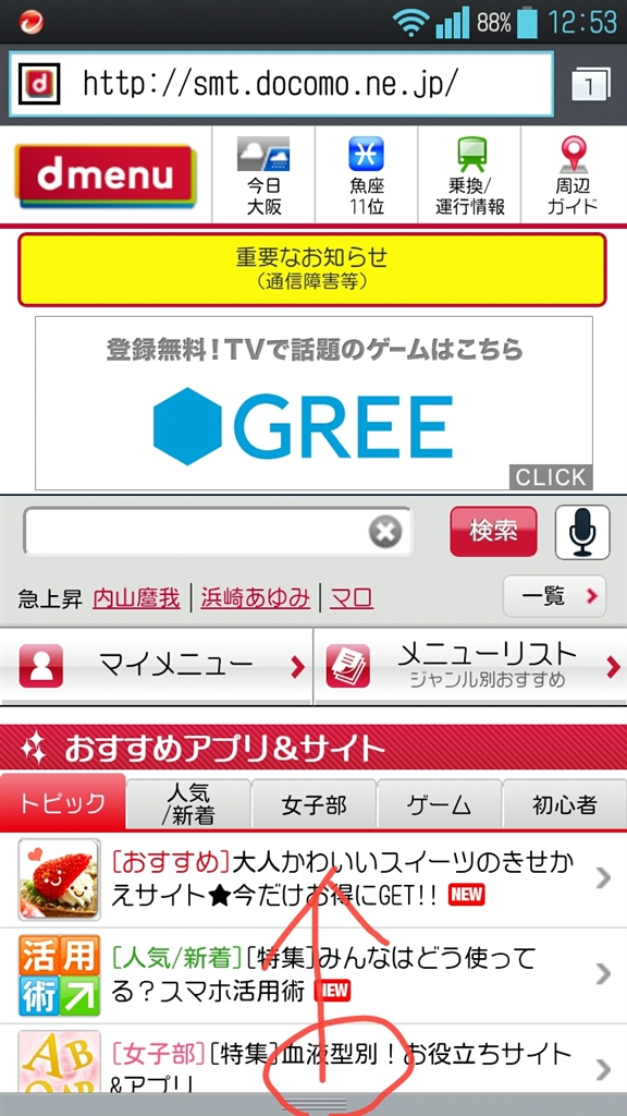 『ツールバーを引き上げます』LGエレクトロニクス Optimus G L-01E docomo おびいさんのクチコミ掲示板画像1/2