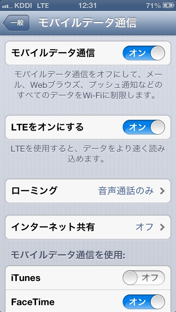 『LTEをオンにすると左上にLTE表示』Apple iPhone 5 16GB au ihard Loveさんのクチコミ掲示板画像1/4