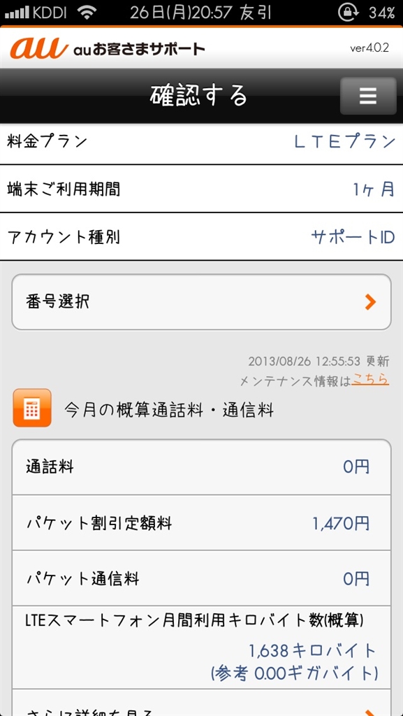 『8月分は日割りになってました』Apple iPhone 5 16GB au スマホビギナー戦士さんのクチコミ掲示板画像2/2