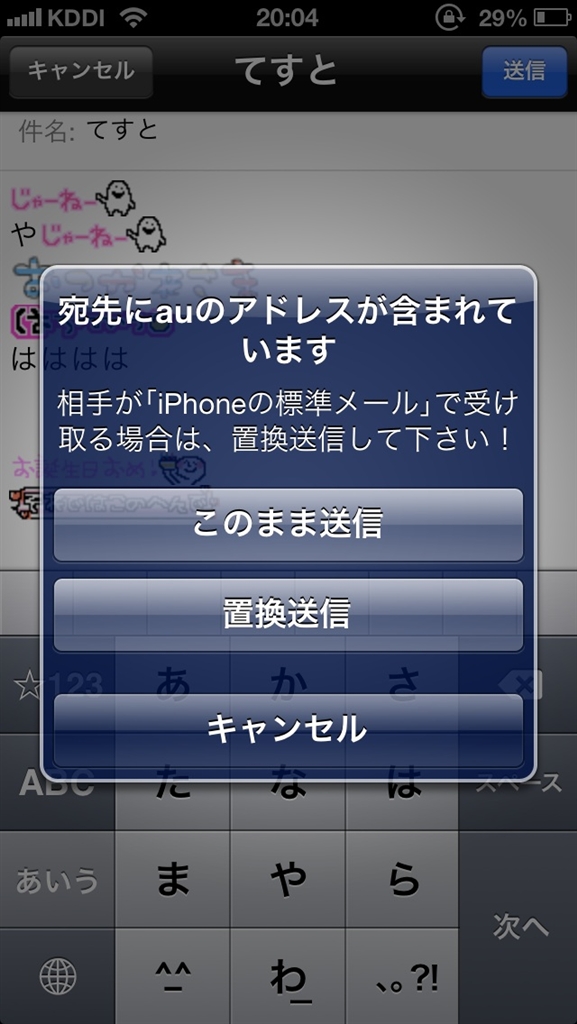置換されたメール