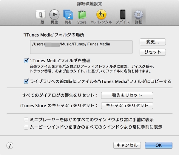 "iTunes Media"フォルダの場所