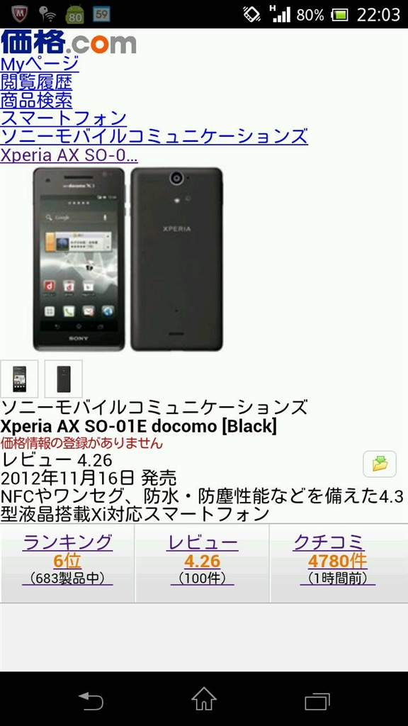 『変な表示2』SONY Xperia AX SO-01E docomo カァーディフさんのクチコミ掲示板画像1/2